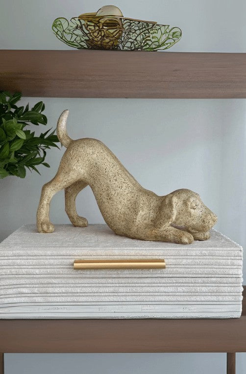 Com design expressivo e acabamento que remete à pedra natural, esta escultura de cachorro com rabo em pé é perfeita para composições cheias de personalidade. Ideal para decorar estantes, aparadores ou jardins internos, ela transmite charme e afeto em qualquer ambiente.