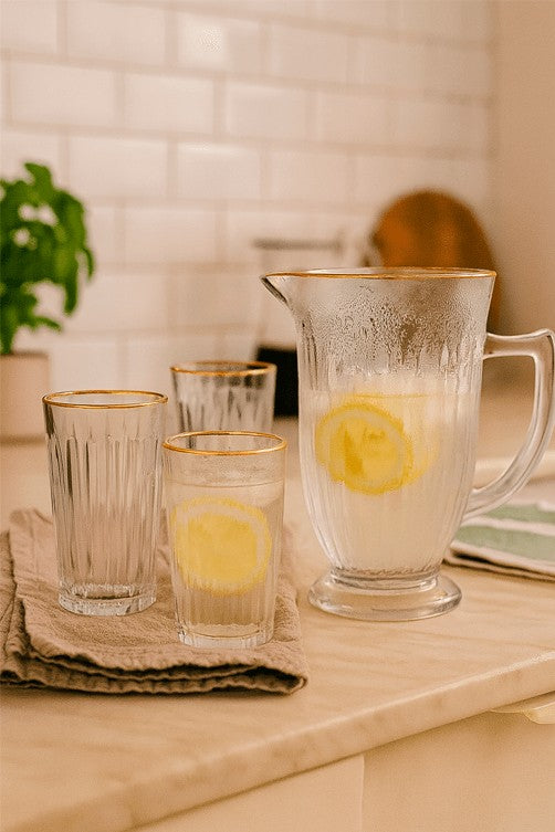 • Conjunto de Jarra e Copos Melina em Vidro 7 Peças 1L