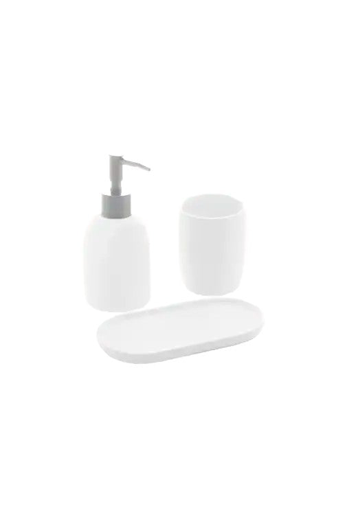 • Conjunto 3 Peças para Banheiro de Cerâmica Londres Branco e Prata
