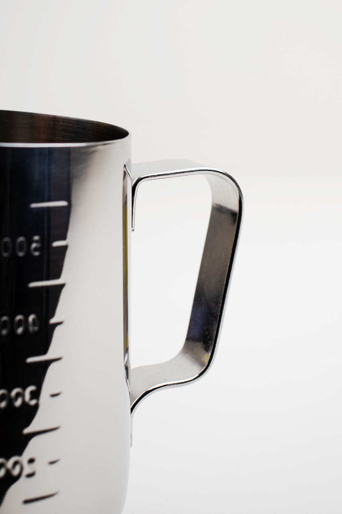 Produto com design diferenciado, medidor lateral para visualização de capacidade, alça larga para evitar o contato com a leiteira.