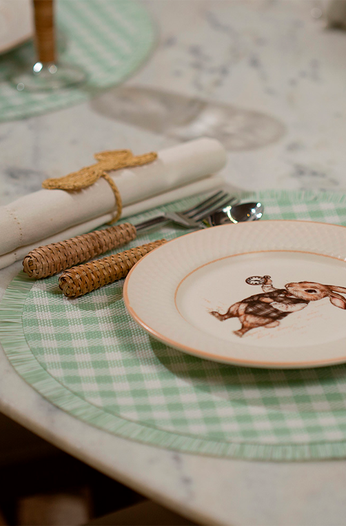 O charme do xadrez clássico ganha um toque artesanal no Jogo Americano Trama Vichy Verde e Areia da Copa&Cia. Com seu padrão xadrez em tons naturais e delicadas franjas nas bordas, a peça traduz a beleza do simples, unindo elegância, textura e conforto à mesa. Feito com materiais de alta qualidade e acabamento cuidadosamente trabalhado, o Jogo Americano Trama Vichy é perfeito para compor mesas com estilo e autenticidade. As cores verde e areia trazem leveza e harmonia, criando composições que acolhem o olhar e tornam cada refeição mais especial.