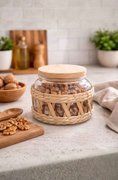 O Porta Mantimentos de Vidro 350ml com Sisal e Tampa de Madeira é a união perfeita entre funcionalidade e estética natural. Produzido em vidro transparente, permite fácil visualização do conteúdo, enquanto o detalhe em sisal trançado adiciona textura, aconchego e um toque artesanal à composição.