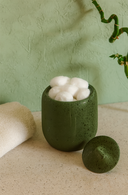 Porta Algodão em Cerâmica Verde