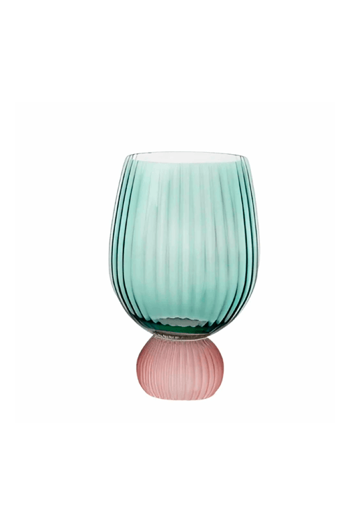 Com design imponente e contemporâneo, esta taça de vidro traz um toque de sofisticação à mesa. Seu corpo arredondado em tom rosé suave contrasta elegantemente com a base texturizada em vidro transparente, criando uma peça que une delicadeza e originalidade. Ideal para servir drinks ou compor a decoração com estilo e personalidade.