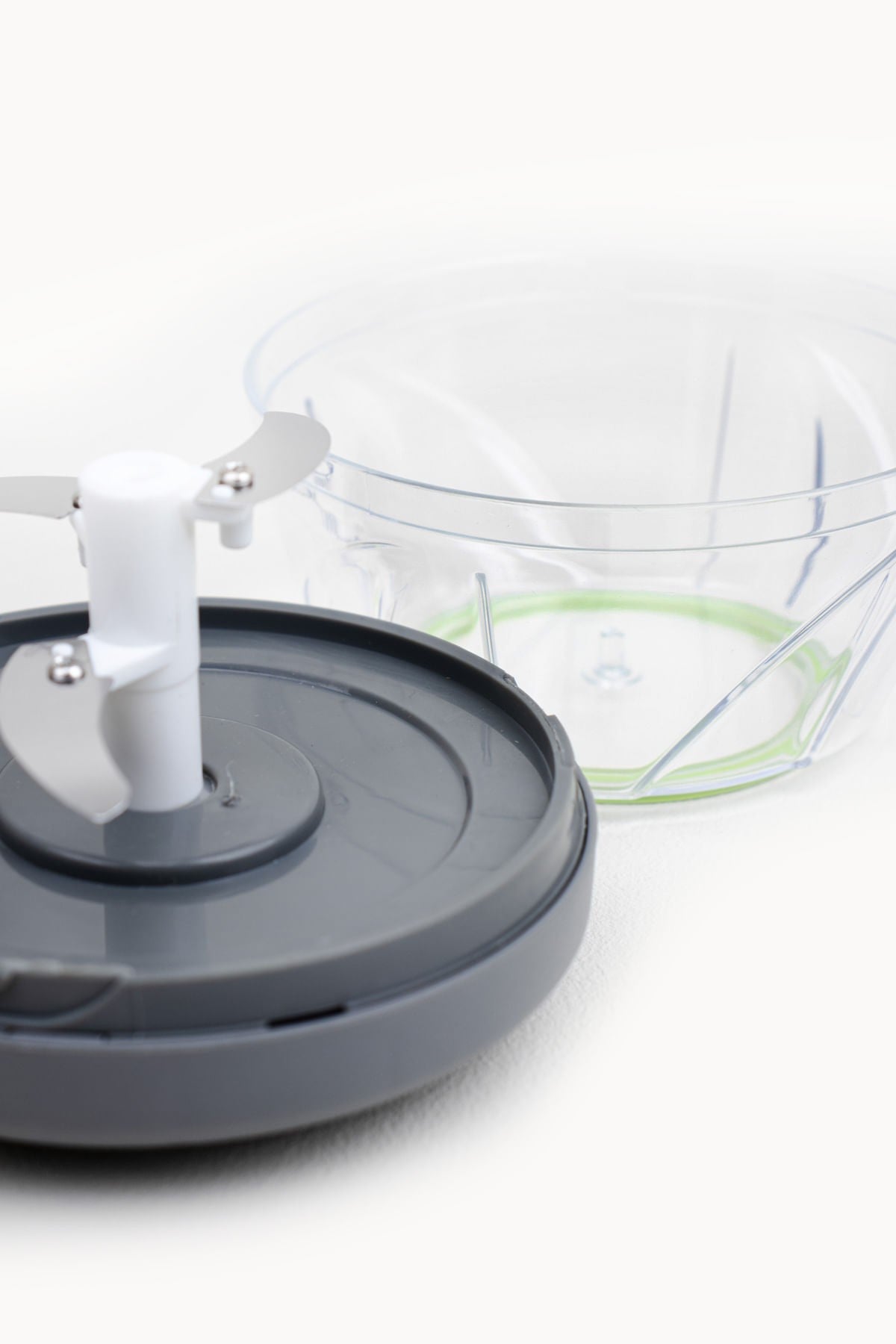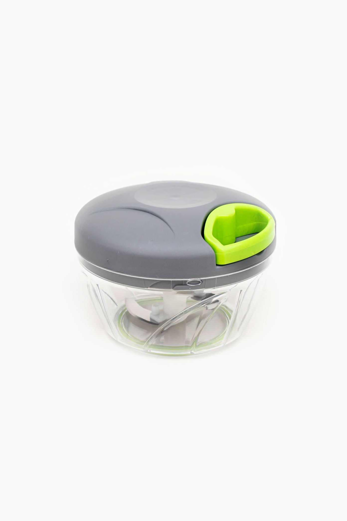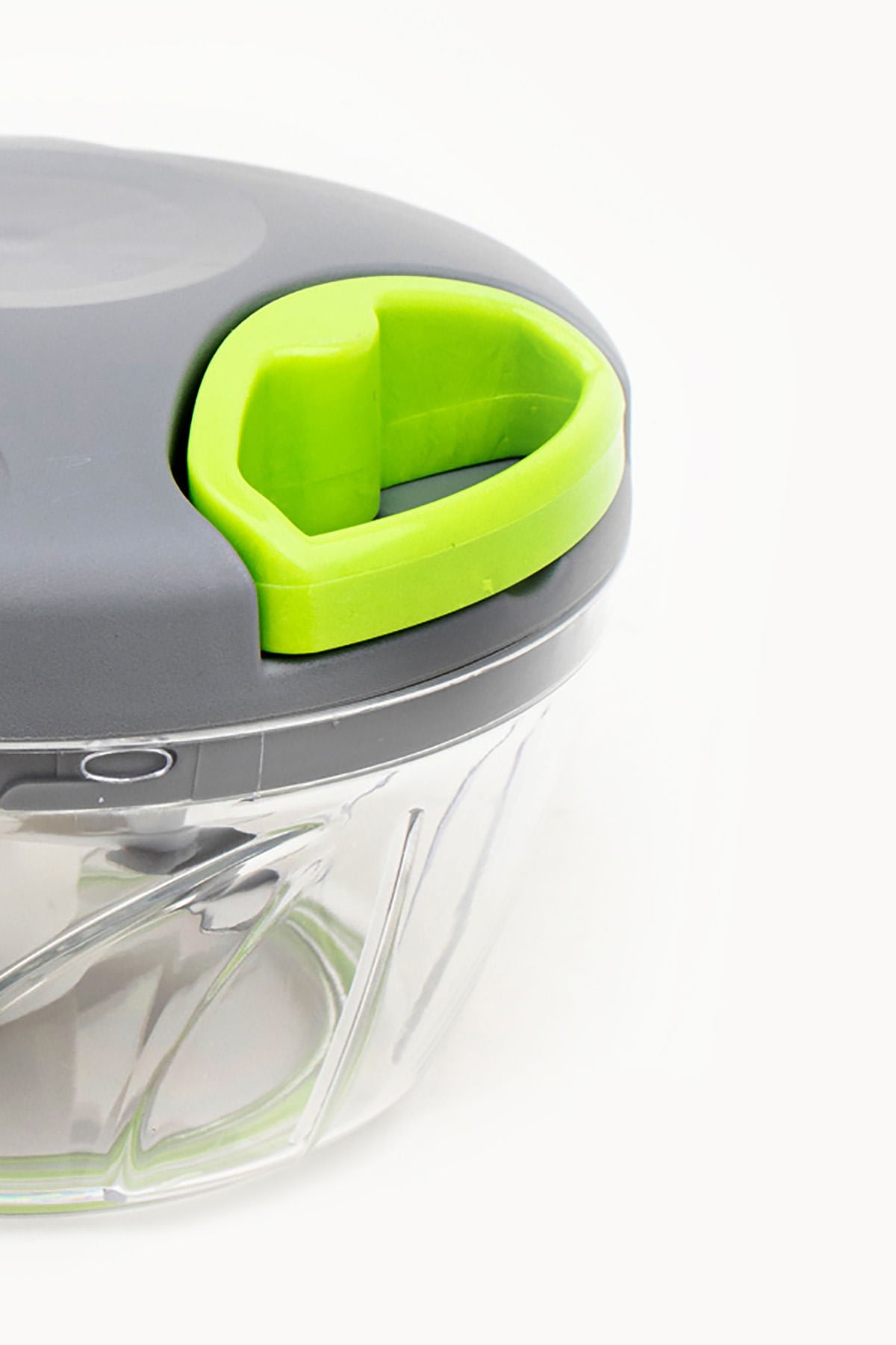 3 lâminas próprias para triturar, fatiar, moer e picar. O mecanismo é ativado ao puxar a corda.