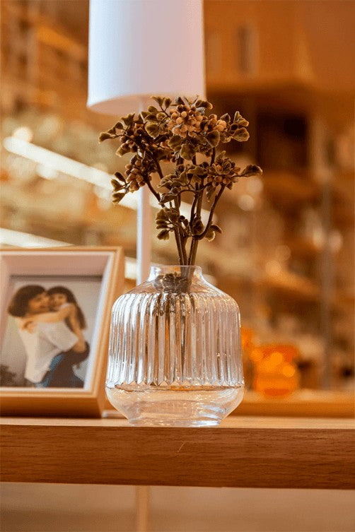 O Vaso de Vidro Canelado Abstract Essencial é a escolha perfeita para quem busca um toque de elegância contemporânea na decoração. Com formato abstrato e acabamento canelado, ele combina arte e funcionalidade em uma única peça. Seu design moderno valoriza a composição com flores secas, folhagens ou arranjos minimalistas, além de se destacar sozinho como item decorativo.