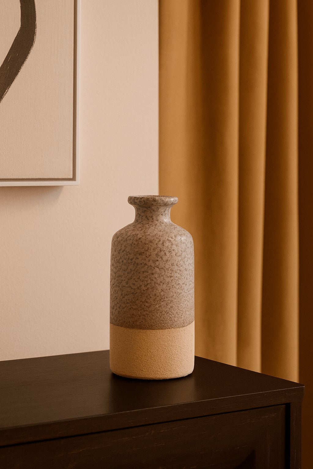 O Vaso Decorativo em Cerâmica Cinza é a escolha ideal para quem busca sofisticação e versatilidade na decoração. Com acabamento texturizado e design moderno que combina o cinza mesclado com a base em tom natural, ele se adapta perfeitamente a ambientes como salas, escritórios e aparadores. Seu estilo minimalista permite destaque tanto sozinho quanto em composições com flores secas e galhos decorativos.